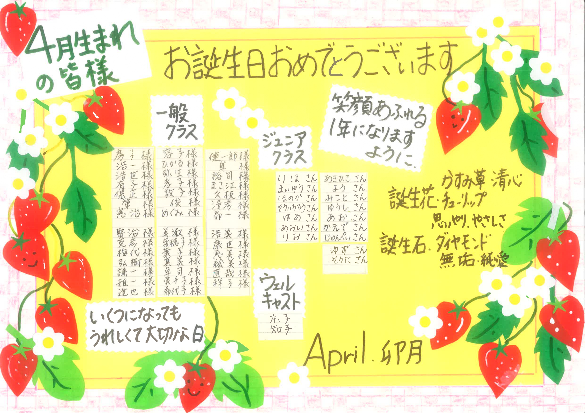 4月生まれの皆様お誕生日おめでとうございます。